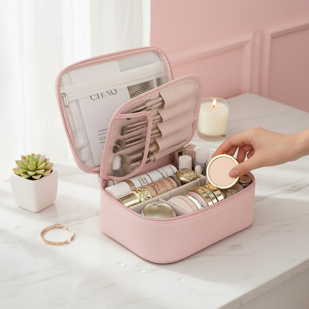 Imaginez-vous un matin où tout s’enchaîne. Vous êtes en retard, vous ouvrez votre trousse et tout est en vrac. Vos pinceaux se perdent, votre rouge à lèvres préféré glisse au fond… Résultat : stress, perte de temps, et une routine beauté bâclée.