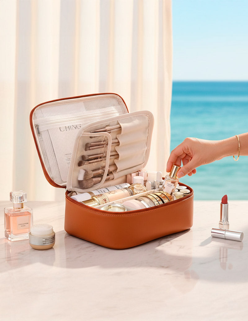On connaît toutes cette situation : arriver à l’hôtel, ouvrir sa trousse et découvrir des produits mélangés, des pinceaux abîmés, des soins glissés au fond. Une petite contrariété qui peut perturber le début d’un séjour que l’on souhaite pourtant paisible et organisé.