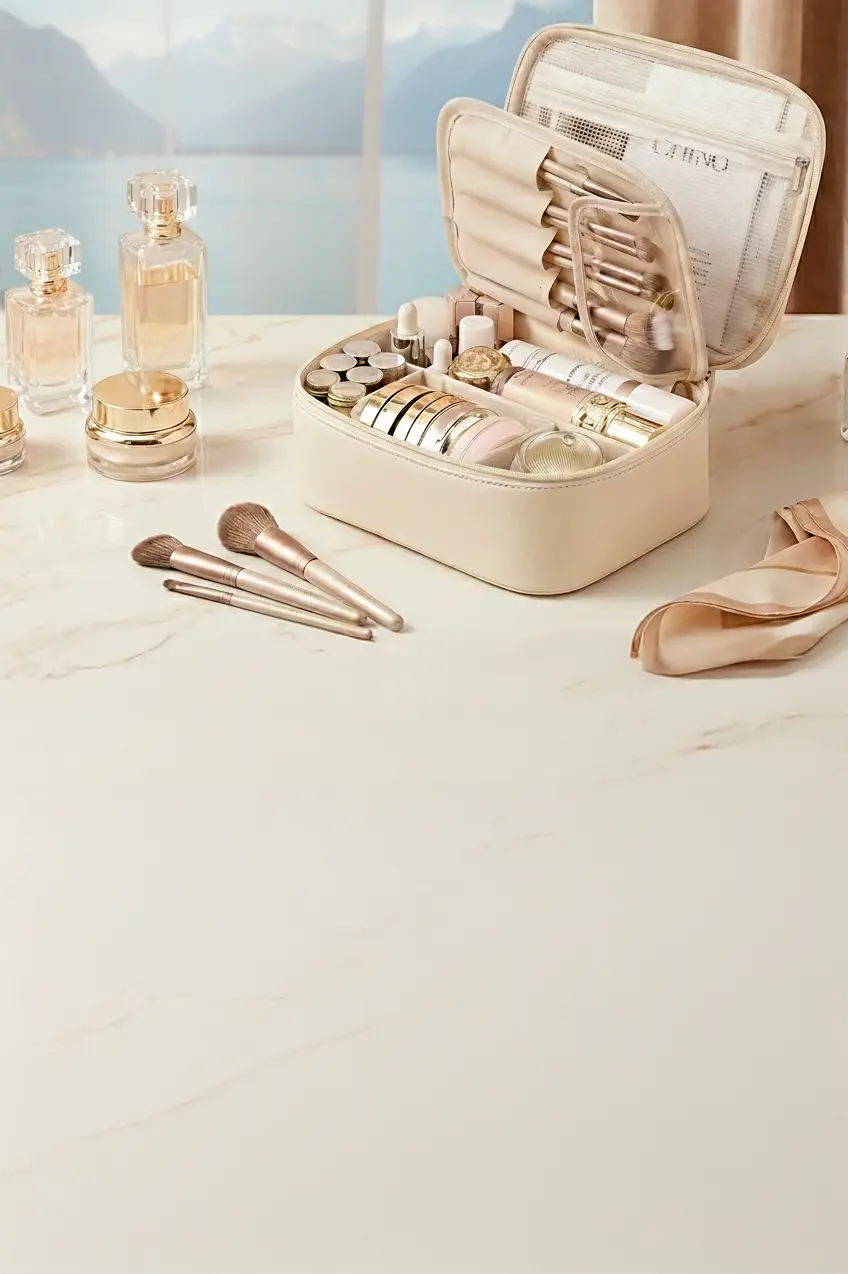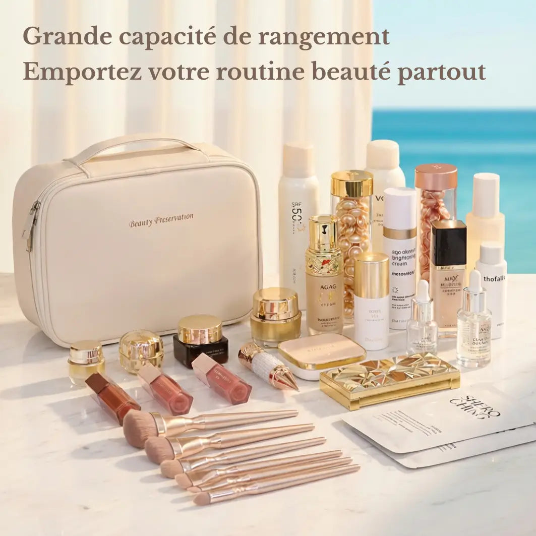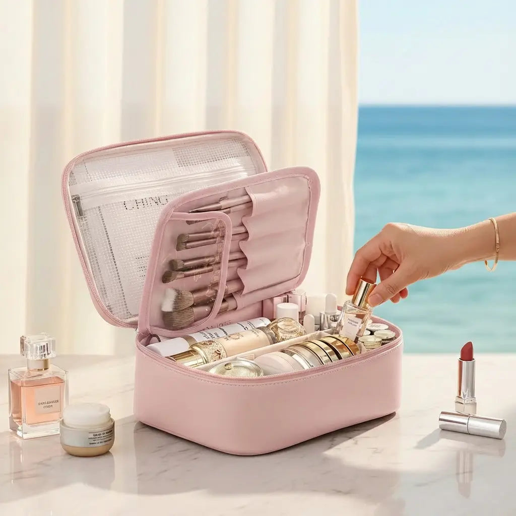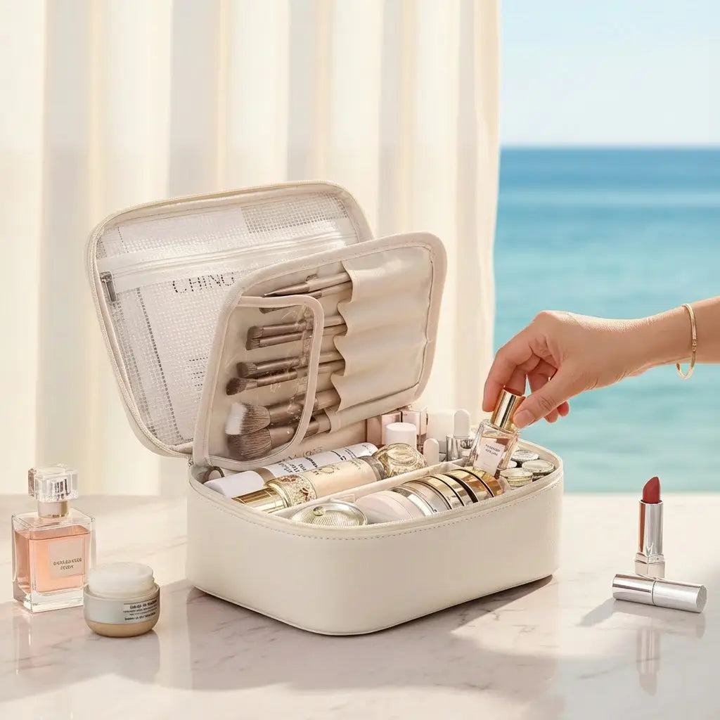 On connaît toutes cette situation : arriver à l’hôtel, ouvrir sa trousse et découvrir des produits mélangés, des pinceaux abîmés, des soins glissés au fond. Une petite contrariété qui peut perturber le début d’un séjour que l’on souhaite pourtant paisible et organisé.